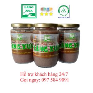 Mắm tôm Làng Xưa được làm từ con tép (ruốc/moi) biển tươi trộn cùng muối hạt tinh khiết, ủ lên men tự nhiên trong chum sành theo phương pháp truyền thống. Sau 6-8 tháng phơi nắng, khuấy đảo, những chum mắm thơm dịu, vị thanh, màu sim chín hoàn toàn tự nhiên tạo nên sản phẩm mắm tôm Làng Xưa.